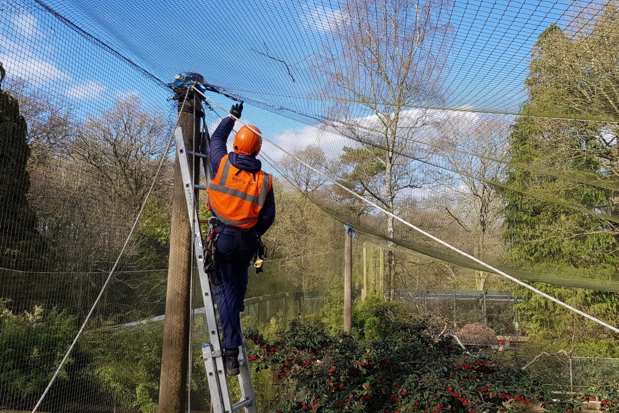 The safety and well-being of your animals are a priority. Lack of maintenance can lead to excessive deterioration of the animal enclosure or aviary. Especially during the winter months, severe weather can damage an unmaintained structure. Therefore, it is important to maintain the net structures regularly to minimise the possibility of structural damage and loss of animals. Alpha RAT Ltd has extensive experience in building and maintaining Zoo structures. The safety of your animals is our priority.