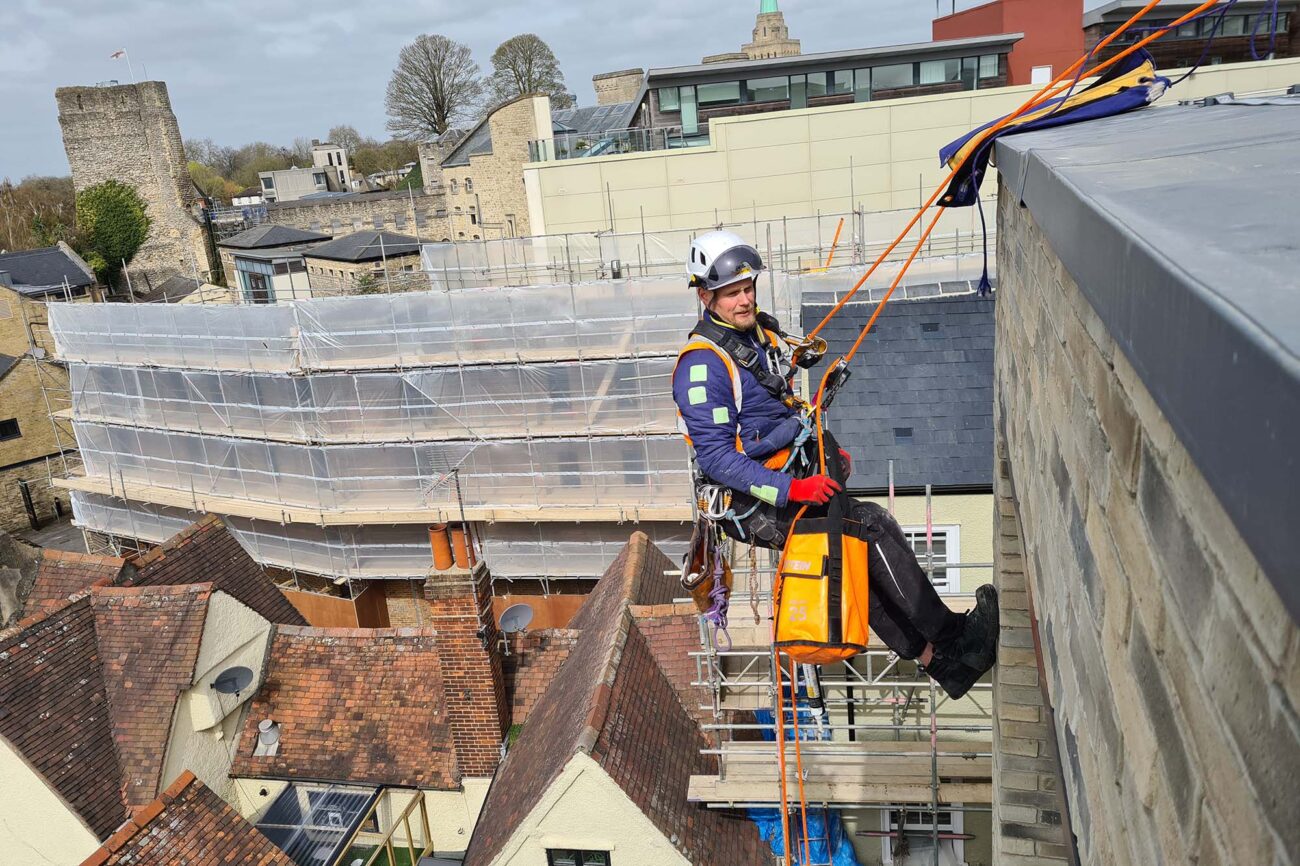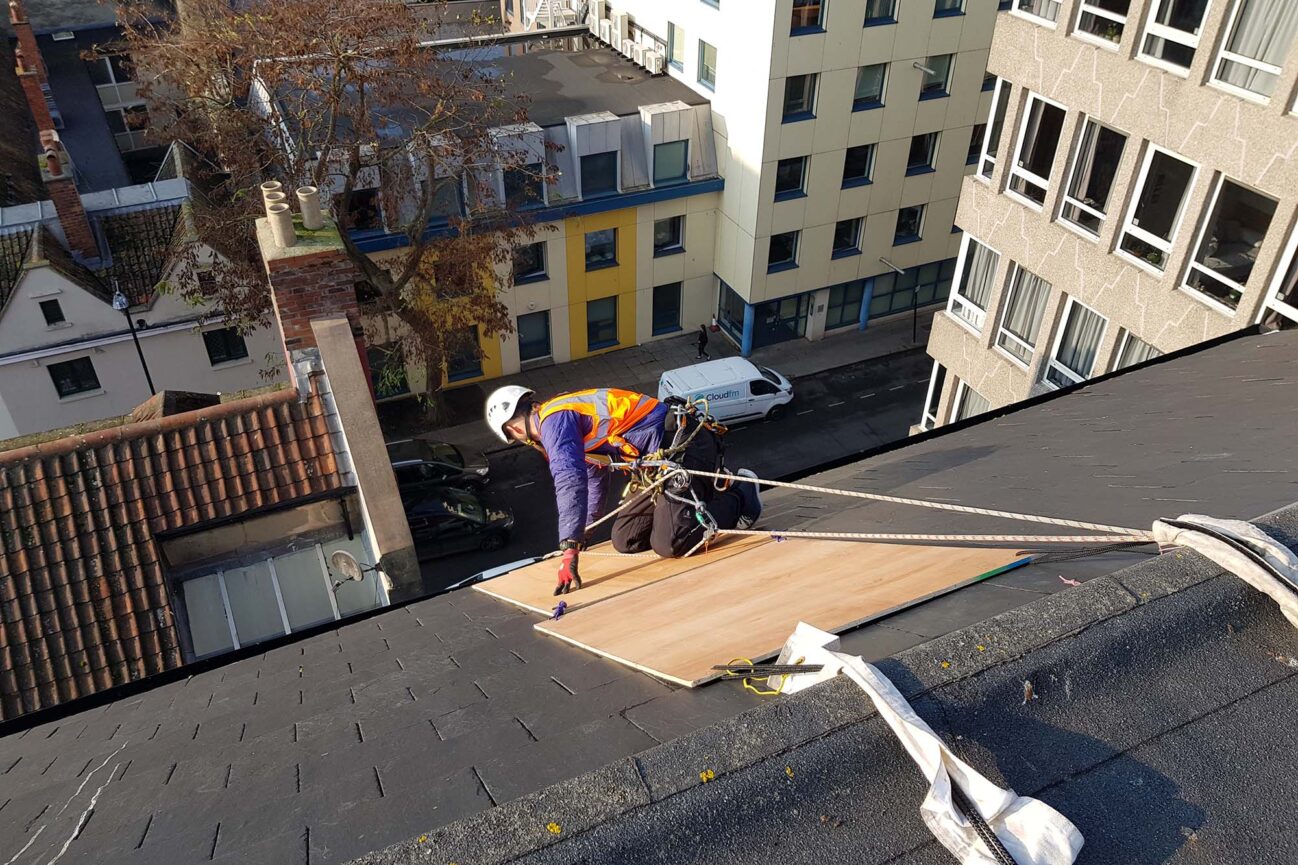 Inspection of building envelopes in crowded cities is often a challenging task. Building a scaffold is very often the least effective solution. We can utilize our rope access system quickly, efficiently and most importantly – safely, which makes it the perfect choice for temporary works, quick inspections or emergency works. We can inspect roofs, walls, cladding facades, curtain walls, rainwater goods, chimneys, vents etc.